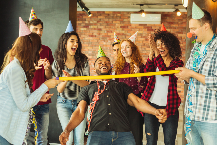 Spiele für Gruppen, die zusammen lachen und gewinnen wollen.